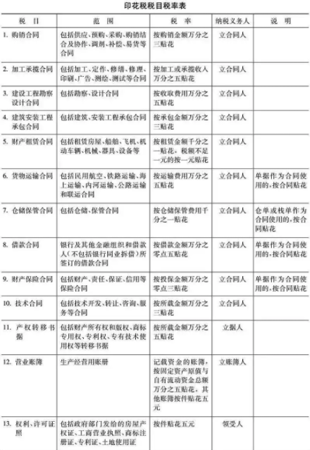 附上《印花税税目税率表》,可供查看具体税率、税额的确定。